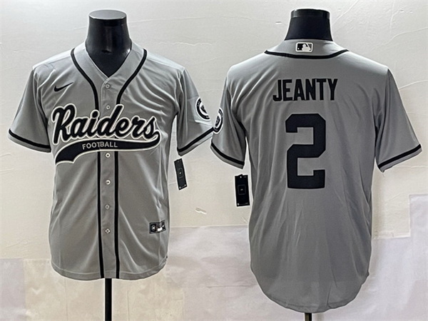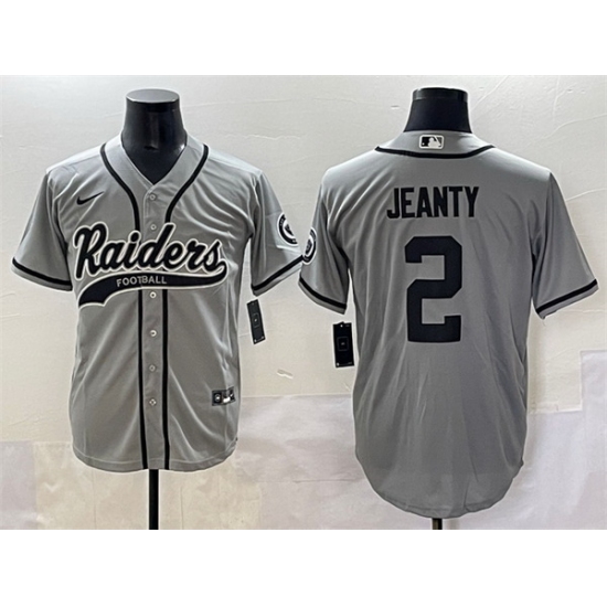 Men Las Vegas Raiders 2 Ashton Jeanty Grey Cool Base Stitched Baseball Jersey