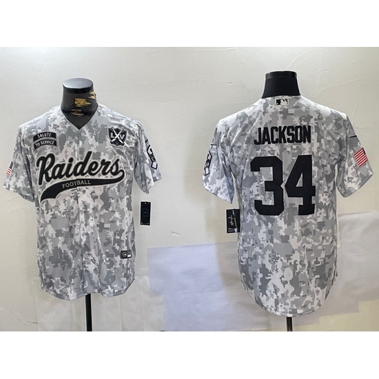 Men Las Vegas Raiders 34 Bo Jackson 2024 Arctic Camo Salute To Service Stitched Baseball Jersey 2