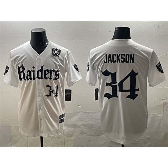 Men Las Vegas Raiders 34 Bo Jackson White 27Gothic Sin City Shadows Edition 27 With 65th Anniversary Patch Vapor Limited Stitched Baseball Jersey