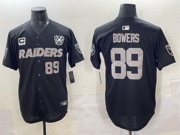 Men Las Vegas Raiders 89 Brock Bowers Black With Nevada Silver Stat Patch And 65th Anniversary Patch 3 Star C Patch Stitched Baseball Jersey