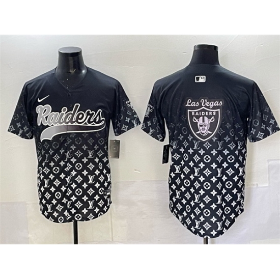 Men Las Vegas Raiders Team Big Logo Black Limited Stitched Baseball Jersey 2