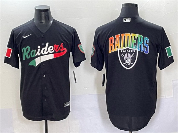 Men Las Vegas Raiders Team Big Logo Black Mexico Cool Base Stitched Baseball Jersey 1