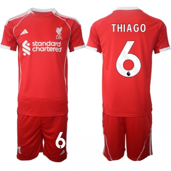 Men Liverpool 6 Thiago 2025 Red Home Soccer Jersey Suit