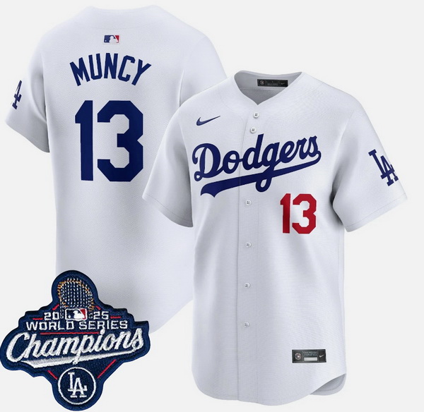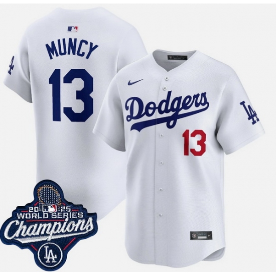Home>MLB>Los Angeles Dodgers>Men>Men Los Angeles Dodgers 13 Max Muncy White 2025 World Series Champions Limited Stitched Baseball Jersey