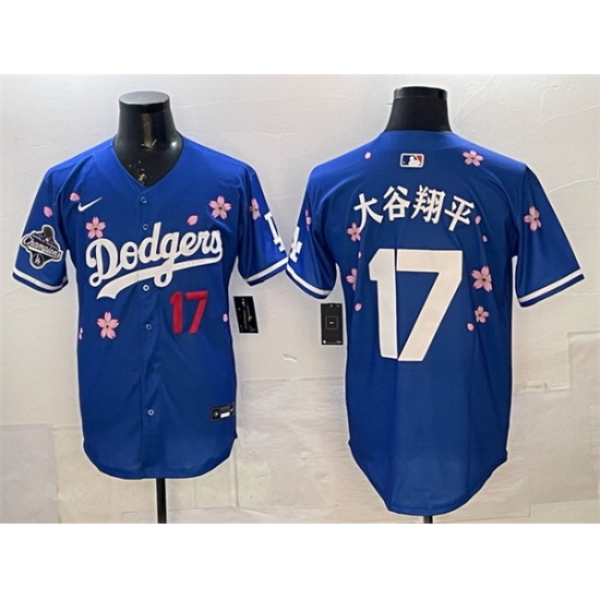 Men Los Angeles Dodgers 17 Shohei Ohtani Royal 2025 World Series Champions Patch Tokyo Series Limited Stitched Baseball Jersey
