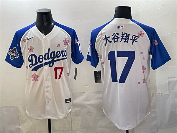 Men Los Angeles Dodgers 17 Shohei Ohtani White Royal 2025 World Series Champions Patch Tokyo Series Limited Stitched Baseball Jersey