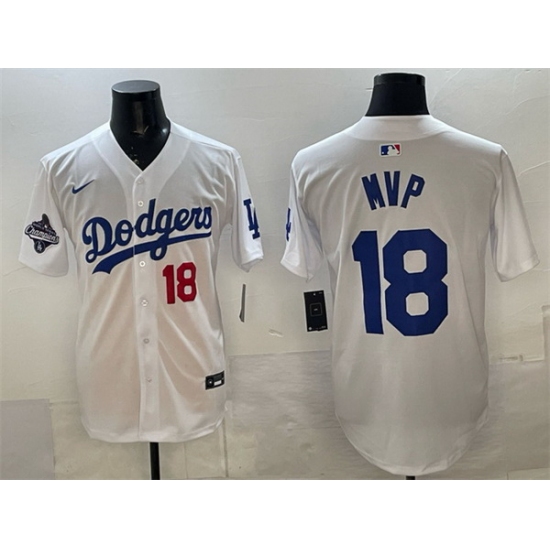 Men Los Angeles Dodgers 18 MVP White 2025 World Series Champions Patch Limited Stitched Baseball Jersey