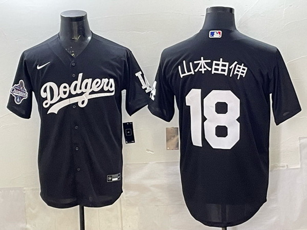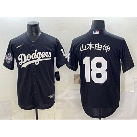 Home>MLB>Los Angeles Dodgers>Men>Men Los Angeles Dodgers 18 Yoshinobu Yamamoto Black 2025 World Series Champions Patch Cool Base Stitched Baseball Jersey