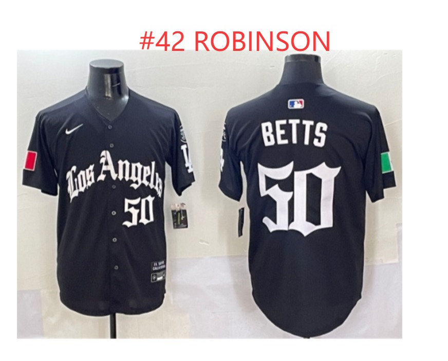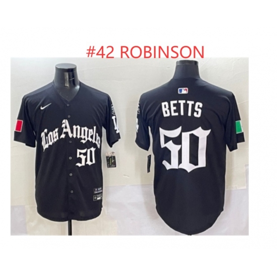 Home>MLB>Los Angeles Dodgers>Men>Men Los Angeles Dodgers 42 Robinson Black Mexico 2025 LA Gothic Style With Fernando Patch Vapor Premier Limited Stitched Baseball Jersey