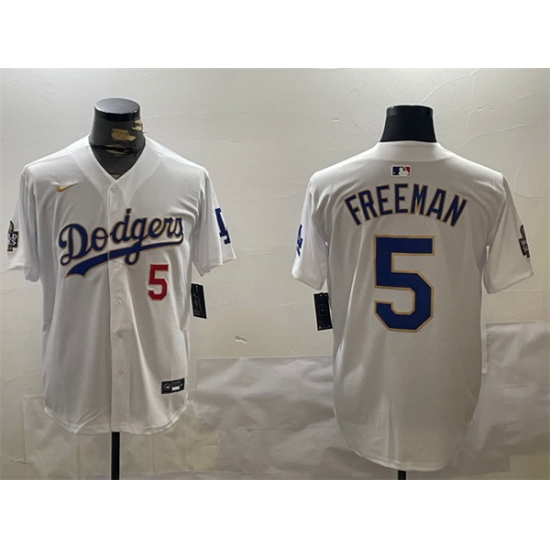 Home>MLB>Los Angeles Dodgers>Men>Men Los Angeles Dodgers 5 Freddie Freeman White Gold 2024 World Series Home Limited Stitched Baseball Jersey