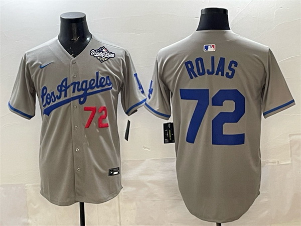 Home>MLB>Los Angeles Dodgers>Men>Men Los Angeles Dodgers 72 Miguel Rojas Grey 2025 World Series Patch Limited Stitched Baseball Jersey