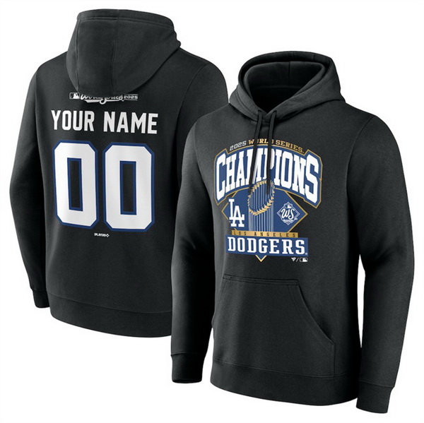 Men Los Angeles Dodgers Black 2025 World Series Champions Custom Black Name 26 Number Hoodie