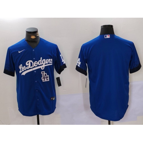 Men Los Angeles Dodgers Blank Blue City Connect Cool Base Stitched Baseball Jersey 1