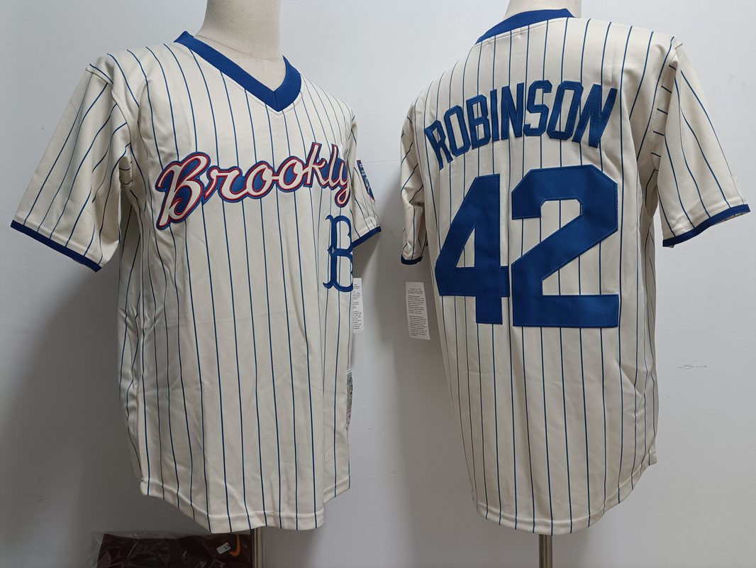 Men Los Angeles Dodgers Brooklyn 42 Jackie Robinson Rice white strips Stitched Jersey