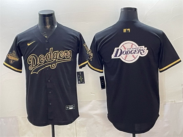 Men Los Angeles Dodgers Team Big Logo Black Gold 2025 World Series Champions Patch Limited Stitched Baseball Jersey