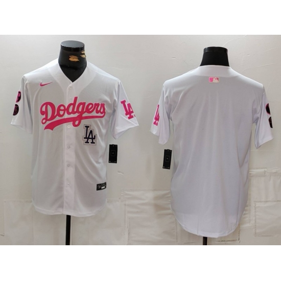 Men Los Angeles Dodgers Team Big Logo White Pink Vin 26 Kobe Patch Stitched Baseball Jersey 9