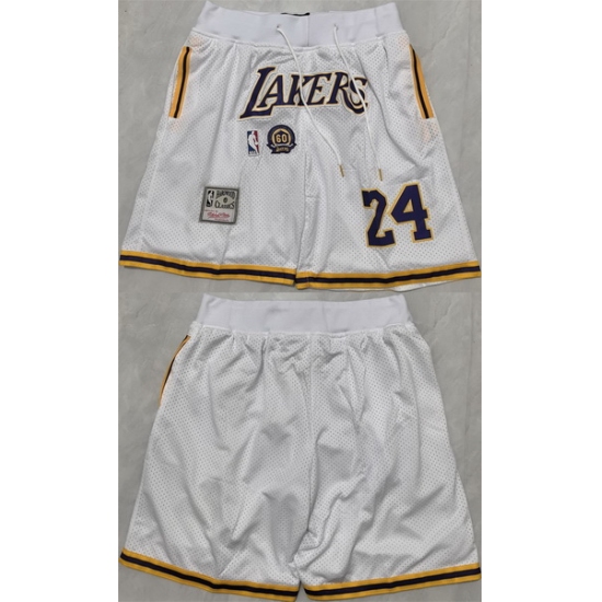 Men Los Angeles Lakers 24 Kobe Bryant White 2025 Shorts