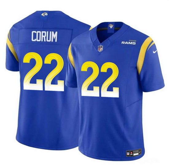 Home>NFL>Los Angeles Rams>Men>Men Los Angeles Rams 22 Blake Corum Blue 2024 Draft F U S E Vapor Untouchable Stitched Football Jersey