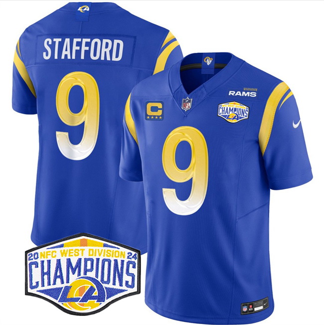 Men Los Angeles Rams 9 Matthew Stafford Blue 2024 NFC West Champions With 4 Star C Patch F U S E Vapor Untouchable Stitched Football Jersey