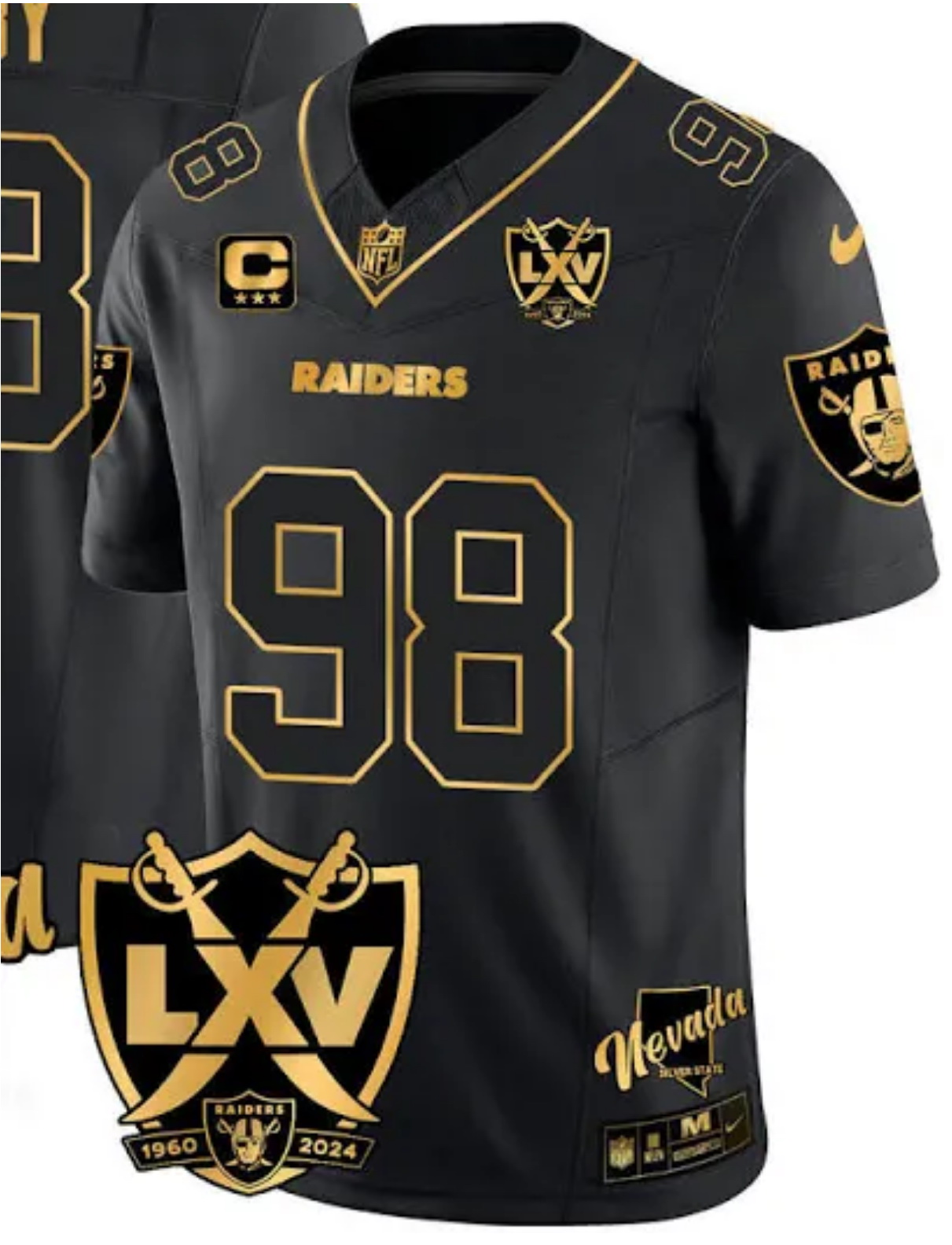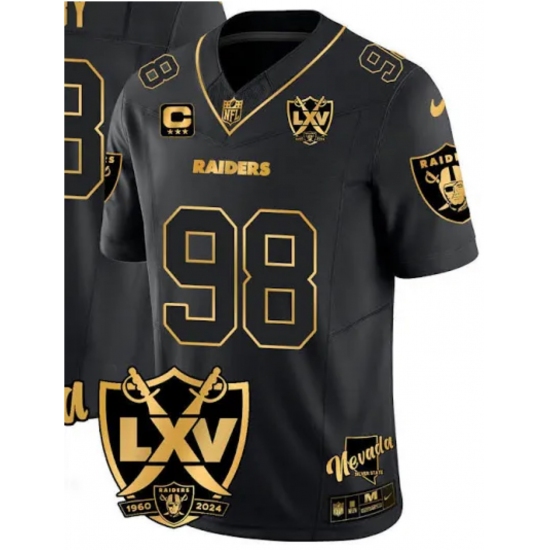 Men Los Vegas Raiders #98 Maxx Crosby Black Gold 2025 Stitched Jersey