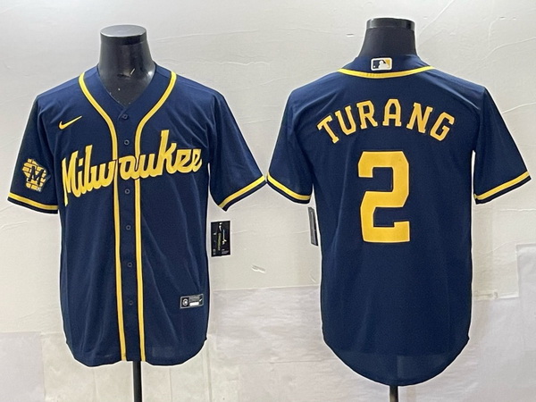 Men Milwaukee Brewers 2 Brice Turang Navy 2025 With Patch Stitched Baseball Jersey