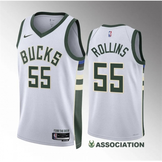 Home>NBA>Milwaukee Bucks>Men>Men Milwaukee Bucks 55 Ryan Rollins White Association Edition Stitched Basketball Jersey