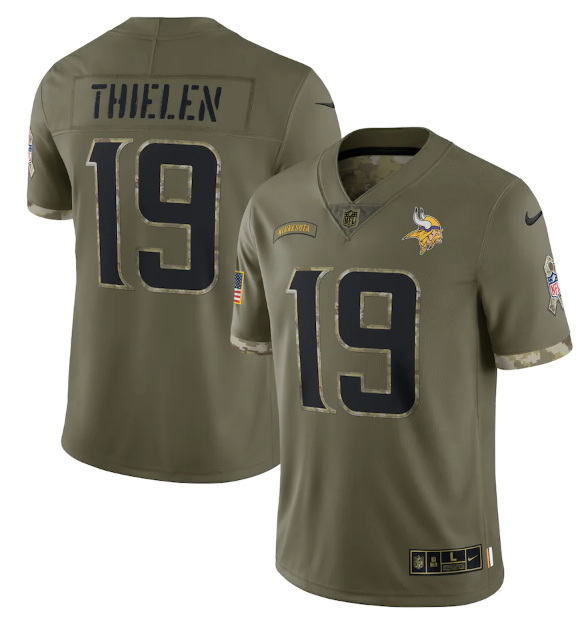 Men Minnesota Vikings 19 Adam Thielen Olive 2022 Salute To Service Limited Stitched Jersey
