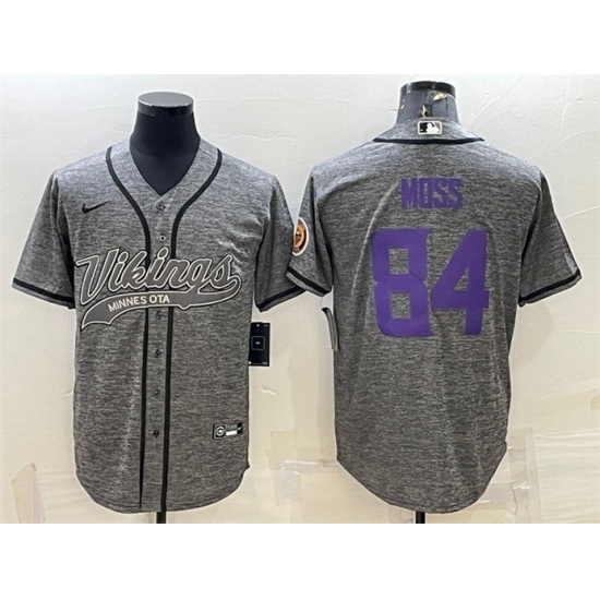 Men Minnesota Vikings 84 Randy Moss Grey With Patch Cool Base Stitched Baseball Jersey