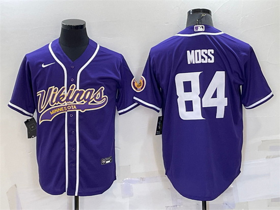 Men Minnesota Vikings 84 Randy Moss Purple With Patch Cool Base Stitched Baseball Jersey