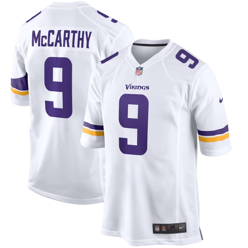 Men Minnesota Vikings #9 QB J.J. McCarthy White Stitched NFL Jersey