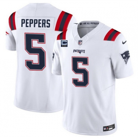 Men New England Patriots 5 Jabrill Peppers White F U S E With 3 Star C Patch Vapor Limited Stitched Football Jersey