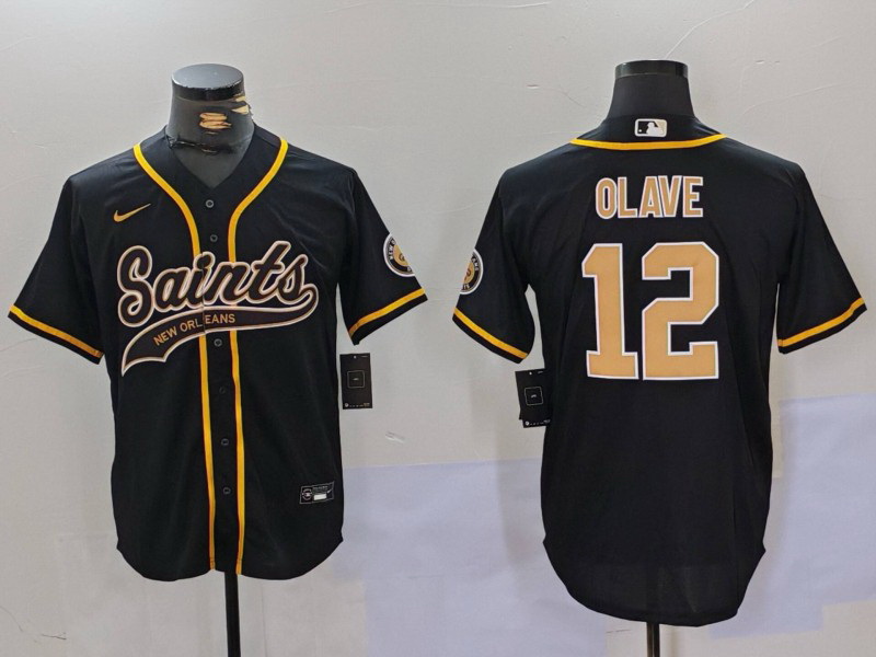 Home>NFL>New Orleans Saints>Men>Men New Orleans Saints 12 Chris Olave Black Cool Base Stitched Baseball Jersey1