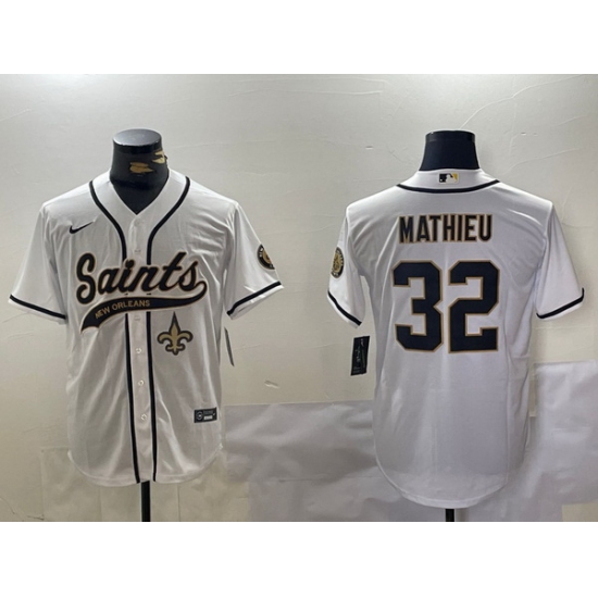Men New Orleans Saints 32 Tyrann Mathieu White Cool Base Stitched Baseball Jersey 3