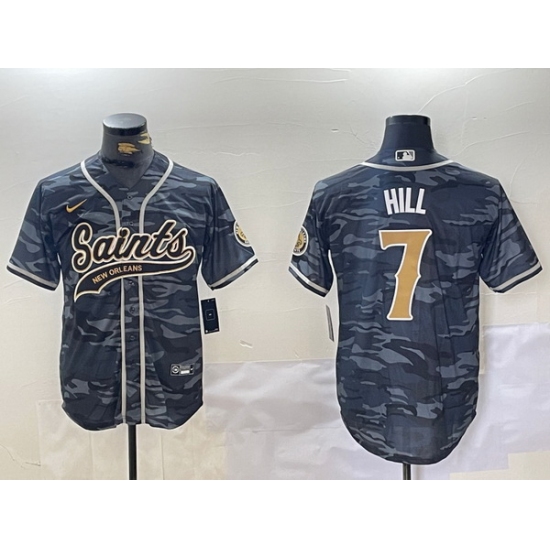 Men New Orleans Saints 7 Taysom Hill Grey Camo With Patch Cool Base Stitched Baseball Jersey