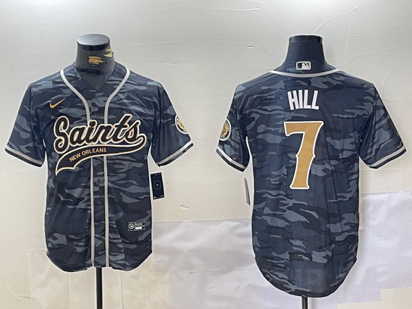 Home>NFL>New Orleans Saints>Men>Men New Orleans Saints 7 Taysom Hill Grey Camo With Patch Cool Base Stitched Baseball Jersey