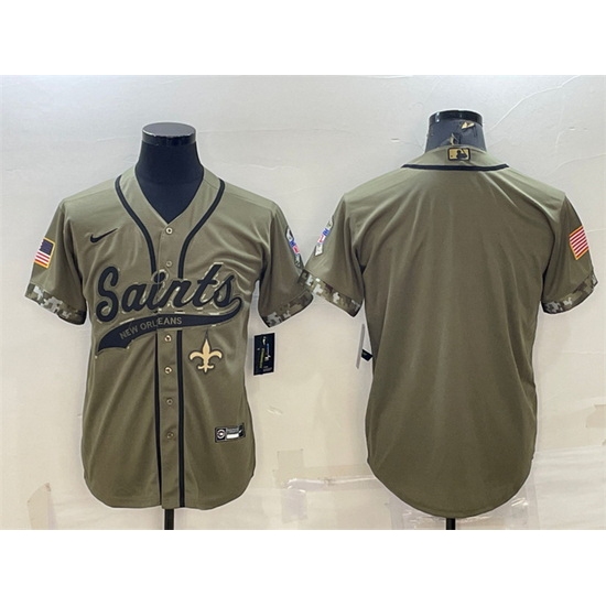 Men New Orleans Saints Blank Olive 2022 Salute To Service Cool Base Stitched Baseball Jersey