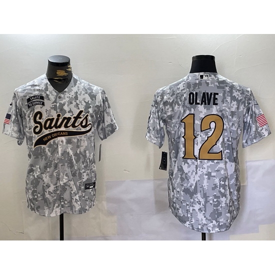 Home>NFL>New Orleans Saints>Men>Men New Orleans Saints Team 12 Chris Olave 2024 Arctic Camo Salute To Service Stitched Baseball Jersey