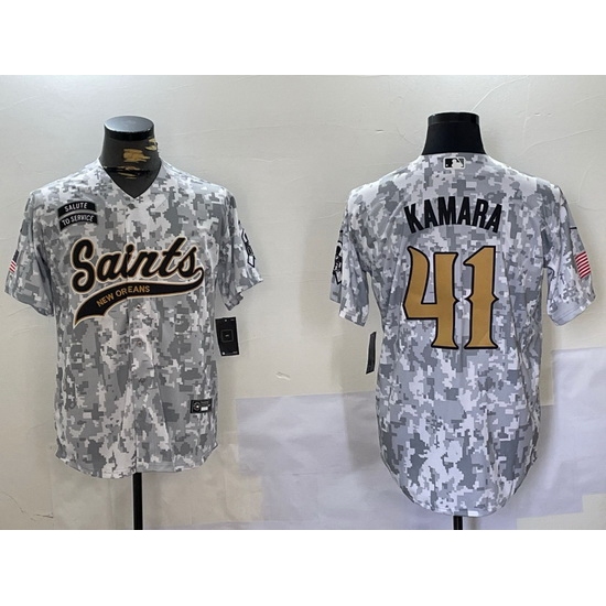 Men New Orleans Saints Team 41 Alvin Kamara 2024 Arctic Camo Salute To Service Stitched Baseball Jersey