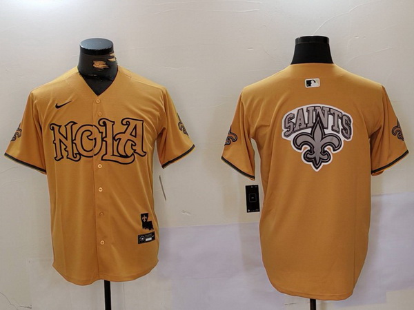 Men New Orleans Saints Team Big Logo Gold Cool Base Stitched Baseball Jersey