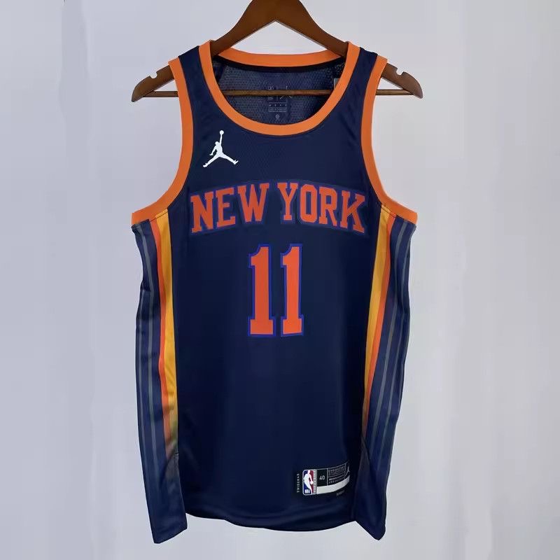 Men New York Knicks Jalen Brunson Navy Blue City Edition Stitched Basketball Jersey