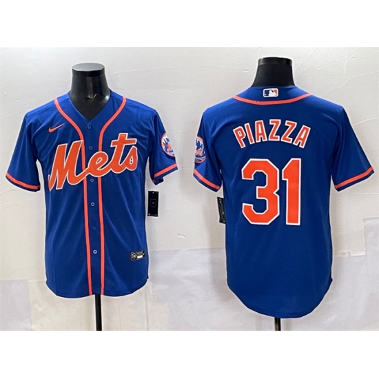 Men New York Mets 31 Mike Piazza Blue Cool Base Stitched Baseball Jersey