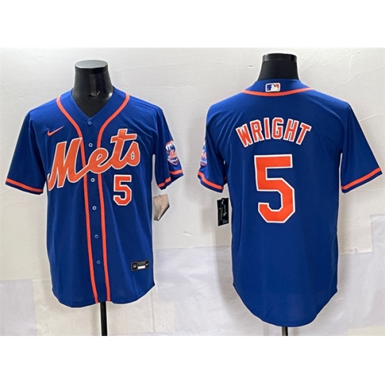 Men New York Mets 5 David Wright Blue Cool Base Stitched Baseball Jersey