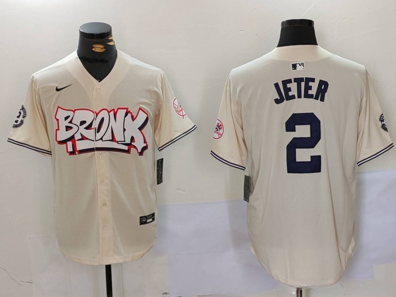Men New York Yankees 2 Derek Jeter Cream The Bronx Graffiti V2 Vapor Limited Stitched Baseball Jersey 6