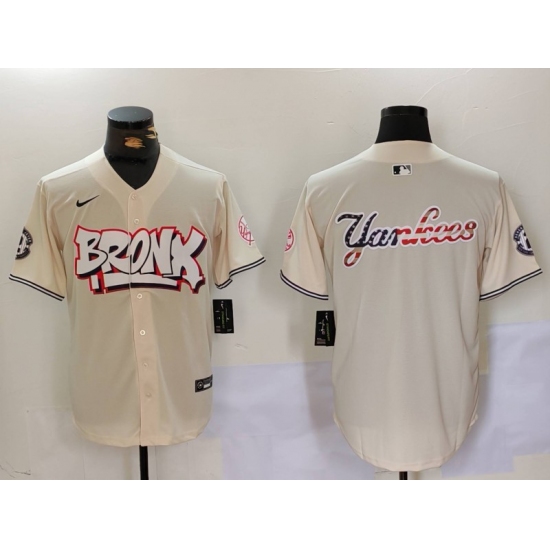 Men New York Yankees Blank Cream The Bronx Graffiti V2 Vapor Limited Stitched Baseball Jersey 10