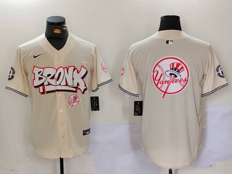 Home>MLB>New York Yankees>Men>Men New York Yankees Blank Cream The Bronx Graffiti V2 Vapor Limited Stitched Baseball Jersey 14