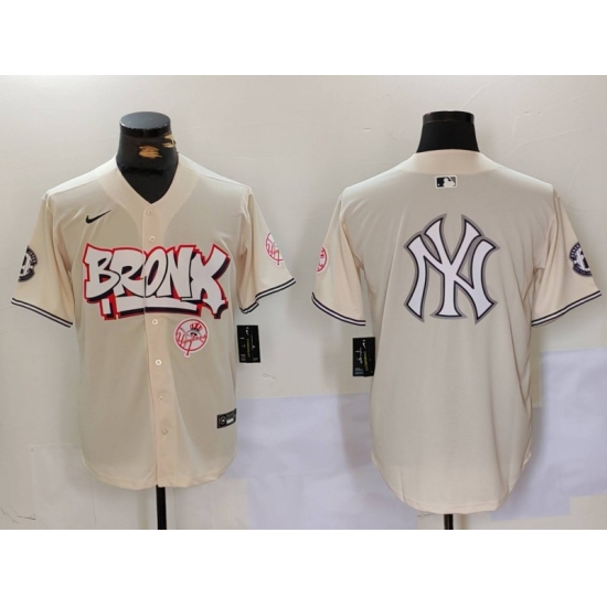 Home>MLB>New York Yankees>Men>Men New York Yankees Blank Cream The Bronx Graffiti V2 Vapor Limited Stitched Baseball Jersey 15