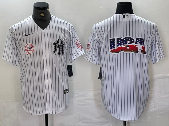 Men New York Yankees White Team Big Logo Cool Base Stitched Baseball Jersey 17