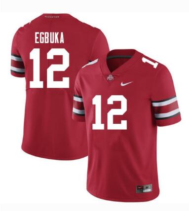 Men Nike #12 Egbuka Ohio State Buckeyes Scarlet NCAA Football Jersey