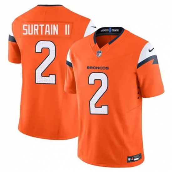 Men Nike Denver Broncos Patrick Surtain II Stitched Orange Limited Jersey