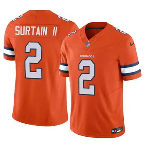 Men Nike Denver Broncos Patrick Surtain II Stitched Rush Orange Limited Jersey